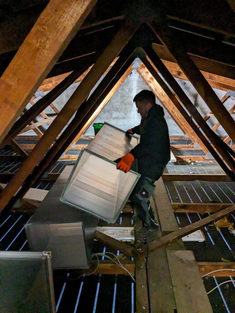 * die neuen Fenster sind eingebaut und neue Fensterbänke in der Halle montiert worden
